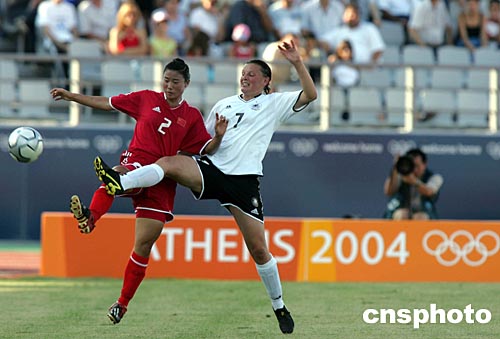 雅典奧運(yùn)會女足比賽當(dāng)?shù)貢r(shí)間11日先燃戰(zhàn)火。在晚間舉行的本屆雅典奧運(yùn)會女子足球小組賽F組的比賽中,曾經(jīng)的“鏗鏘玫瑰”中國女足,首戰(zhàn)不敵世界冠軍德國隊(duì),以0比8罕見的大比分慘敗。