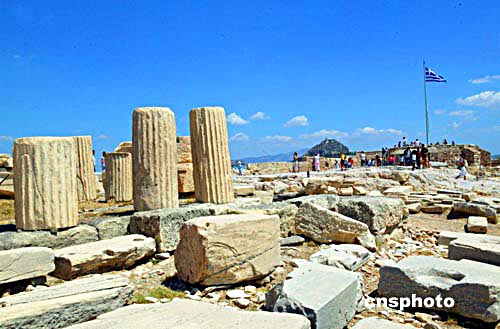 從雅典衛(wèi)城山頂遺留的殘垣斷柱,依稀還能領(lǐng)略到當年古希臘的輝煌。中新社記者:王瑤