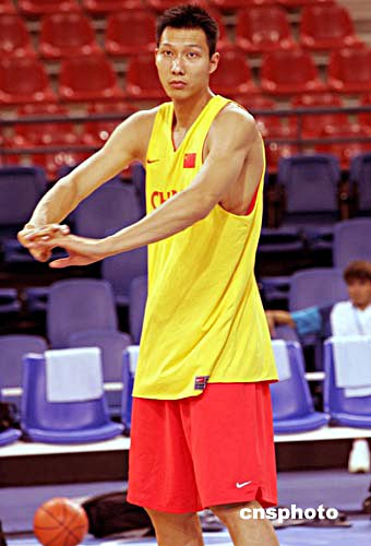 當滿頭銀發的中國男籃主帥哈里斯姍姍出現在訓練館內時,隊員們開始集合,此時比預定的訓練時間晚了半個多小時。在例行的熱身活動后,中國男籃分成黃、紅兩隊進行了幾套戰術的演練。由姚明、易建聯、李楠、劉煒、朱芳雨等組成的黃隊無疑是中國男籃的主力陣容。