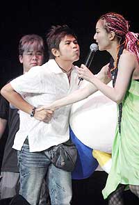 當Sammi邀請3位歌迷上臺合唱時,一位20幾歲自稱“五金“的男歌迷,一上臺就忘形大叫:“好開心呀!”表現十分夸張,鄭秀文已被他嚇了一跳,怎知他隨即公開向鄭秀文表達愛意:“其實我仰慕你很久了!”觀眾即時噓聲四起!