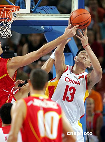 愈戰愈勇的西班牙隊在最后一節比賽中依然延續了瘋狂的進攻,將比分差距進一步擴大。中國隊換上巴特爾和姚明雙塔,但場上形勢仍無改觀,在比賽還剩下最后四分鐘時,加索爾又一次在姚明頭上扣籃,裁判判姚明阻擋犯規,五次犯規的姚明無奈地走出場外。徹底失去希望的中國隊最終以五十八比八十三告負。