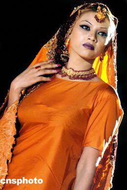 8月15日,在慶祝巴基斯坦國慶57周年活動上,模特演繹巴基斯坦頂尖時裝設計師Amna Malik的作品。