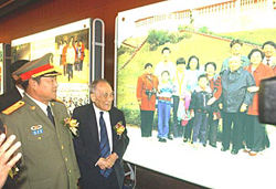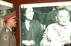 解放軍駐港部隊(duì)副政委張志國少將(左一) ﹑中華全國僑聯(lián)副主席莊世平參觀鄧小平百年誕辰圖片展。