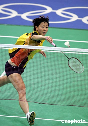 中國參加雅典奧運會女子羽毛球單打比賽的選手周密,當?shù)貢r間8月16日以2比0輕松戰(zhàn)勝保加利亞選手佩蒂婭,與隊友張寧、龔睿那一同進入前四名。中新社記者:任晨鳴