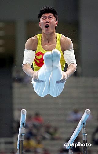 李小鵬在雙杠比賽中表現出色,顯示出個人實力。