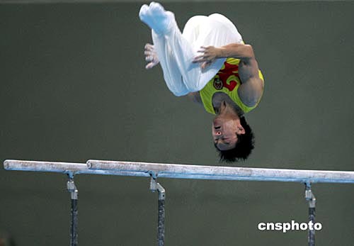楊威列男子體操全能決賽吊環(huán)比賽第一