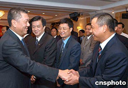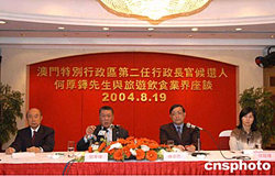 澳門特別行政區第二任行政長官候選人何厚鏵,十九日在濠景酒店與澳門旅游及飲食界代表舉行座談會,聽取業界人士在經營旅游及飲食業中存在的問題及意見。作者:梁永強