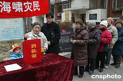 北京市展覽路街道的社區居民踴躍為印度洋地震海嘯災民捐款。