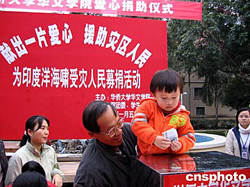 華僑大學華文學院來自二十個國家和地區的七百多名師生,五日發出愛心倡議,伸出援助之手,排隊爭先恐后為海嘯受災地區捐款。作者:楊伏山