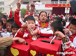 圖:廣西第一所孤兒學校為受海嘯襲擊的災區(qū)捐款