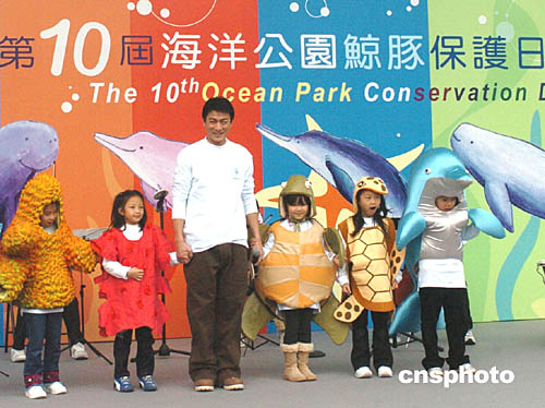 香港鯨豚保護基金大使劉德華與一眾小小“海洋生物”8日亮相于香港第十屆海洋公園鯨豚保護日活動現(xiàn)場。