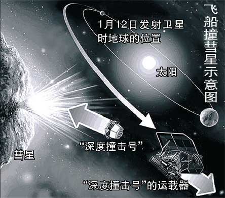 中新網(wǎng)1月12日電 國際在線消息:美國國家航空航天局(NASA)近日傳出消息,一艘名為“深度撞擊號”的飛船將于1月12日升空;6個月后,其搭載的撞擊器將直接沖向“坦普爾1號”彗星的彗核,完成人類首度撞擊彗星。此次撞擊將首次獲取大量彗核碎片,為人類探究太陽系起源提供新的線索,也為地球遭遇小天體撞擊時“轉(zhuǎn)守為攻”積累數(shù)據(jù)。