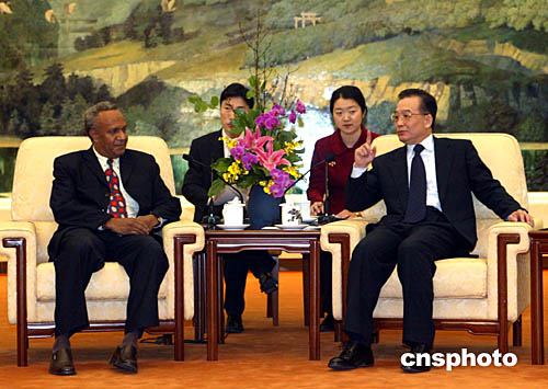 中國(guó)國(guó)務(wù)院總理溫家寶一月十八日在北京會(huì)見(jiàn)瓦努阿圖副總理兼外長(zhǎng)薩托·基爾曼。中新社記者:廖文靜
