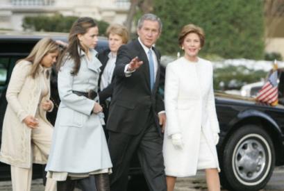 1月20日,美國總統布什和夫人勞拉及其兩個女兒前往圣約翰大教堂。(美聯圖)