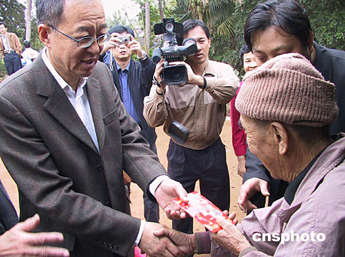 中新社東方一月二十日電(記者顧時宏)海南的東方華僑農(nóng)場今天陽光明媚,當九十二歲的越南老歸僑葉氏阿婆,從國務院僑辦副主任劉澤彭手中接過春節(jié)慰問紅包時,她激動地用廣東話說:“多謝!多謝政府的關心!”