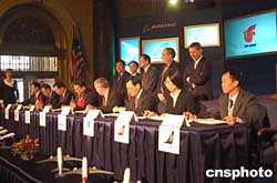 圖為中美航空業者在美國商務部舉行簽字儀式。作者:余東暉