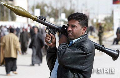 伊拉克警察手持火箭推進式手榴彈在納杰夫街頭警戒