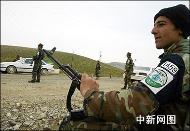 在伊拉克北部庫爾德一城鎮,幾名伊拉克庫爾德特警隊員在一路邊檢查站值勤。選舉投票前夕,伊拉克關閉了邊界,實行嚴格的安全保衛措施,保證選舉順利進行。
