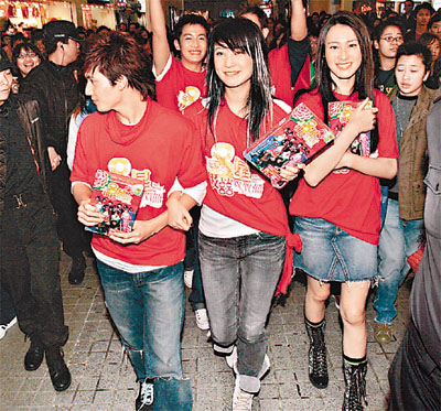 雖然Twins身在臺灣而缺席,但英皇五星的出現同樣哄動,加上打鑼打鼓的舞龍儀式,令現場氣氛推至高潮!熱情的歌迷重重包圍,令五星寸步難行。當開始派發揮春時,歌迷瘋狂上前搶奪,場面一發不可收拾,為顧及安全,沒到兩分鐘,五星就連忙登車離去。身穿迷你短裙的Isabella,活動未開始前,還表示不擔心混亂中被摸,但當她被擠在人群當中,不禁表現驚慌,一直雙手護胸。而Yumiko則由Boy'z的Kenny保護,最后五星在保安開路下離開,此時才可以輕松地向Fans揮手道別。