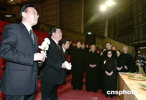 海協會會長汪道涵的個人代表孫亞夫、李亞飛在追思會上獻花。