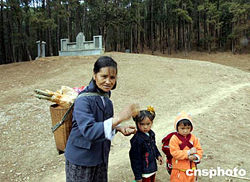 2月3日,云南省龍陵縣松山村一名八十歲農婦在松山戰役紀念遺址向參觀者控訴六十多年前日本侵略軍燒殺奸淫搶掠的罪行。1942年,日本侵略軍從緬甸入侵云南省西部,被中國軍隊和怒江天險所阻后在怒江南岸的龍陵縣松山構筑大規模防御工事,1944年9月被中國第11集團軍攻克。2005年是中國抗日戰爭勝利六十周年,云南各界將舉行一系列紀念活動。中新社記者:任晨鳴