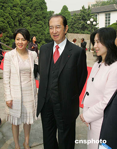 資料圖片:去年十月十一日,何鴻燊(中)出席上海同濟大學中法中心揭幕儀式。作者:潘索菲