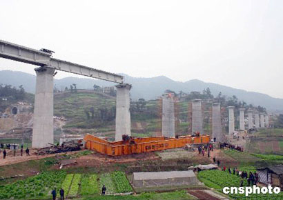 今天上午八點三十分左右,正在施工中的遂渝鐵路北碚區東陽謝家灣段鋪軌車突然發生翻塌,造成施工現場四名工人當場死亡,八人受傷,其中二人因傷勢過重,經全力搶救無效死亡。