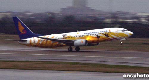 今年臺商春節包機最后一班航班二月二十日從臺北起飛,搭載一百四十六名乘客飛往北京。圖為海南航空HU7952班機從桃園機場起飛。作者:中新社/中時