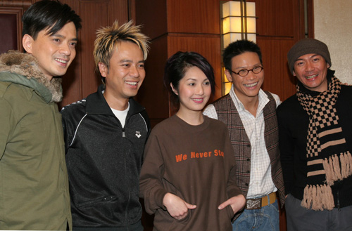 圖左起:黃耀明、克勤、千華、康仔及江華支持打擊翻版(圖片來源:大公報)