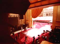 舉行美國第七十七屆奧斯卡頒獎典禮的柯達劇場,二月二十七日中午拉開帷幕,準備迎接嘉賓。作者:賈國榮