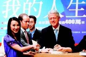 中新網3月1日電 來自TVBS消息,美國前總統克林頓的魅力讓臺灣美女藝人、主播也瘋狂,平常都有很多粉絲的美女蕭薔和主播侯佩岑,今天都成了克林頓的超級粉絲,很興奮的在簽書會上排隊等簽名,蕭薔還用英文向克林頓問好,別人都只握一次手,克林頓特別和蕭美人握了兩次手。