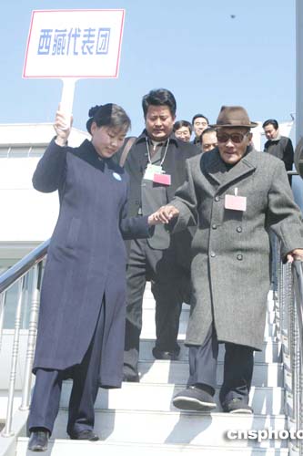 三月二日,參加十屆全國人大三次會議的西藏代表團抵達北京機場。作者:廖文靜