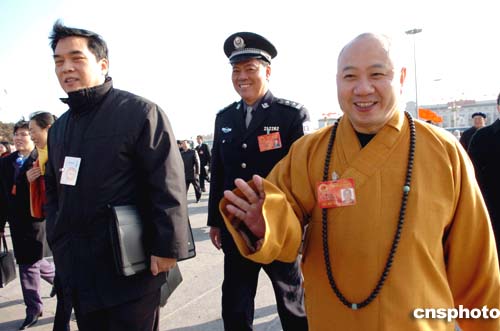 十屆全國人大三次會議三月四日在北京人民大會堂舉行預備會,廣東代表團的釋明生代表(右)出席會議。作者:陳文