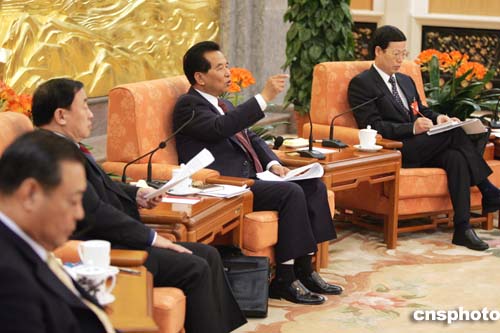圖:吳官正與山東代表一起審議政府工作報告