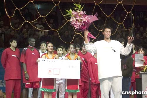 三月六日晚的CBA全明星賽三分球決賽中,來自廣東的朱芳雨以二十五分擊敗對手成功蟬聯全明星三分王。二零零四至二零零五賽季CBA全明星賽在江蘇省南京市五臺山體育館打響,中場休息時間舉行了CBA全明星賽三分球決賽。作者:盛佳鵬