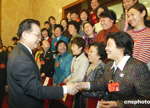 圖:溫家寶三八節(jié)前與女代表合影留念