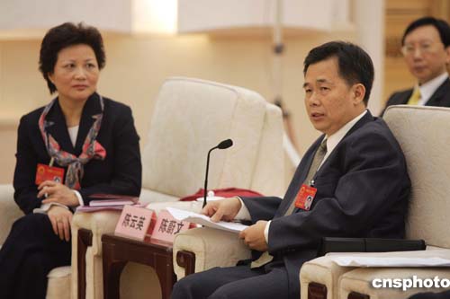 十屆全國人大三次會(huì)議第二次全體大會(huì)三月八日在北京人民大會(huì)堂舉行,會(huì)議結(jié)束后,各代表團(tuán)舉行全體會(huì)議審議反分裂國家法草案。圖為陳蔚文代表在臺(tái)灣代表團(tuán)會(huì)議上發(fā)言。作者:毛建軍