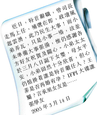 學友在聲明上先說出大家關心的社會大事,然后才承認女兒于三八婦女節出世,母女平安,最搞笑是他說:“小弟弄瓦,只是小事一椿……小弟固然十分欣喜,但心仍惦掛誰是特首繼任人?王菲是否再婚有孕?IFPI大碟誰屬?言承旭女友是……”平日說話沉實的學友,突然來個大幽默,令人大為意外,而他終于如愿再添丁,大家也為他高興。