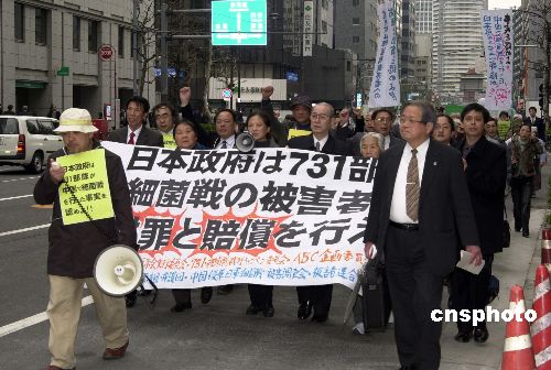 侵華日軍細菌戰受害訴訟,三月二十二日在東京結束二審。庭審結束后,原告團王選(中)等人和中日兩國民間后援人士在東京市中心舉行集會,要求獲得公正判決,并呼吁日本政府正視歷史。作者:王健