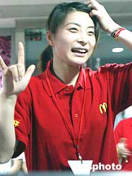 麥當(dāng)勞中國(guó)有限公司三月二十三日在北京舉行“均衡生活方式”宣傳活動(dòng),麥當(dāng)勞形象代言人、奧運(yùn)冠軍郭晶晶參加活動(dòng)。作者:錢(qián)興強(qiáng)