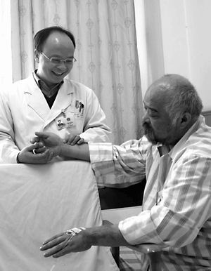 小護士拿一件病號服貼在李琦身上比劃:“讓我看看長短,這是專門給你做的,不知道縮水了沒有。”他乖乖伸出胳膊比劃一番,又撩起上衣衣擺,指著褲子上一拃長的口子說:“人實在,系褲子都使勁。一勒,破了。我要穿有松緊帶的新褲子!”一會兒,合他要求的褲子送來了。(郭愛娣 吳敏)