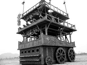 此外,記者了解到,“襄陽大戰(zhàn)”整個古戰(zhàn)場周圍用藍布圍起作為背景,而視效背景則要靠電腦制作拷貝粘貼上去;一輛“大戰(zhàn)車”要“制造”5輛戰(zhàn)車,幾門火炮要有二十幾門火炮齊發(fā)的效果,都要在電腦里“造就”;襄陽城被蒙古火炮炸出大缺口,襄陽城頭火光烈焰的場景,則要另外制作出鏡頭。其中,把500名群眾演員通過電腦特效復(fù)制十萬大軍,與以往的真人戰(zhàn)爭、武打大場面相比,是一個最大的不同。張紀中對記者表示,在整個直播中并不會出現(xiàn)過多的所謂“大場面”片段,因為劇中大部分“大場面”的描寫是要通過后期電腦特效制作才能展現(xiàn)出來。
