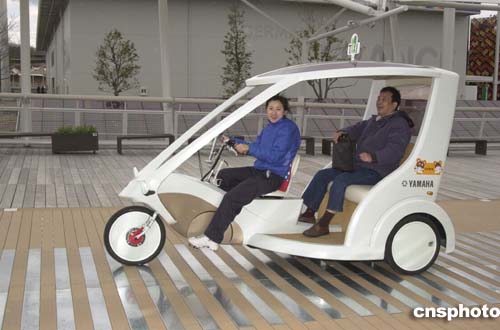 日本愛知世博會開幕以來吸引大批參觀者。一種設計新穎的“人力出租車”大受參觀者歡迎。作者:王健