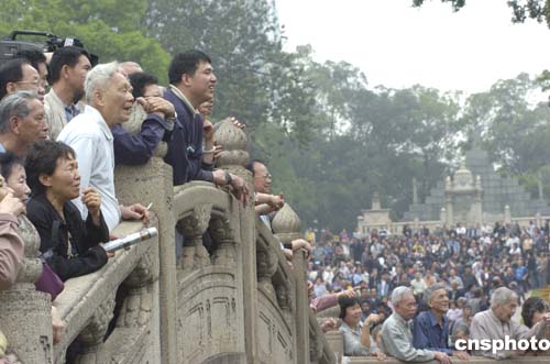 上午九時(shí)三十分左右,拜謁活動(dòng)還未正式開(kāi)始,烈士陵園內(nèi)就已人山人海,擠滿(mǎn)了聞?dòng)嵹s來(lái)歡迎江丙坤一行的市民。大家都期待著這個(gè)具有歷史意義時(shí)刻的到來(lái)。