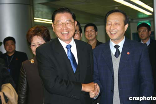 圖:江丙坤一行抵達(dá)南京 受到熱烈歡迎