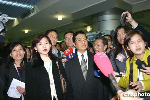 國民黨新聞發言人張榮恭在機場接受記者采訪