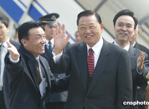 圖:江丙坤完成“經貿之旅、緬懷之旅”揮手告別北京