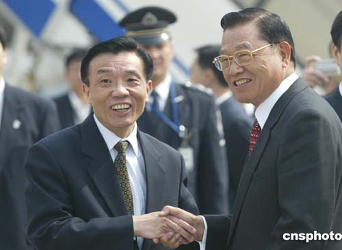 四月一日,中國國民黨副主席江丙坤完成在中國大陸三地的“經貿之旅、緬懷之旅”后,在北京首都國際機場啟程返臺。中共中央臺辦副主任李炳才在機場為其送行。作者:廖文靜