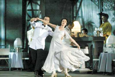 演出的開場很新鮮,一面虛擬的大幕徐徐拉開,巨大的銀幕上出現了當年那部老電影《卡薩布蘭卡》的片頭,黑白鏡頭將觀眾帶回到半個世紀前發生一段浪漫故事的卡薩布蘭卡。因為是首次合成排練,多數演員沒有穿演出服。盡管如此,演員們的精彩表演還是贏得了在場記者的掌聲。(張學軍)
