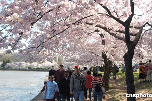 每年一度的美國華盛頓櫻花節(jié)四月八日開始舉行,吸引各地游人爭相觀賞。作者:余東暉